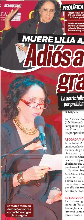 Una larga trayectoria de más de seis décadas dan fe… lilia aragón. Muere lilia aragón a los 82 años de edad.